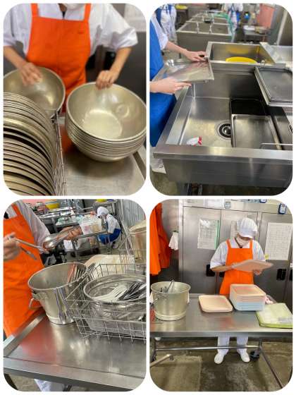 今日は、給食に使用する器具や食缶などの検品の様子をご紹介します。