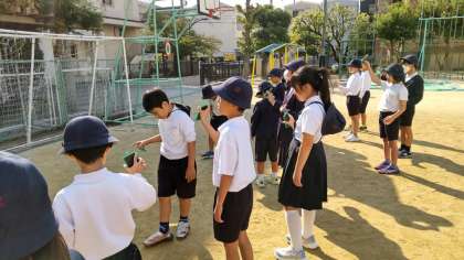 3年生は、理科で「光のせいしつ」の単元に入りました。まずは、鏡で光を反射させて自由試行しています。この単元では、光はまっすぐぐ進むことや光を集めると温かさが増すことを学習します。温かさが増すことを調べる実験では、2枚、3枚の鏡を使って光を集め、放射温度計いう特殊な温度計を使い、表面温度を測っていきます。 放射温度計は体温をおでこで測った非接触体温計計と同じ仕組みですが、学校の放射温度計はマイナス50度〜200度まで測ることができます。