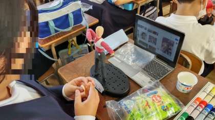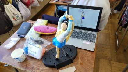 6年生は針金で体の曲がりを表現した後に、粘土で筋肉をつけ、そのあとカラー粘土をつけて、体の曲がりや筋肉の躍動感を表現していました。ほとんどがスポーツをしている姿です。黙々と作業をしていました。