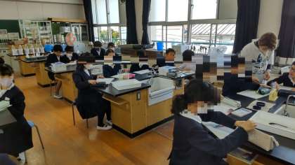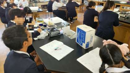 6年生は「水よう液の性質」の単元で、薄い塩酸にアルミニウムを溶かし、たくさんの泡を出した後、あと形もなくなっている水溶液を蒸発皿に少しとって、水分を蒸発させる実験をしていました。