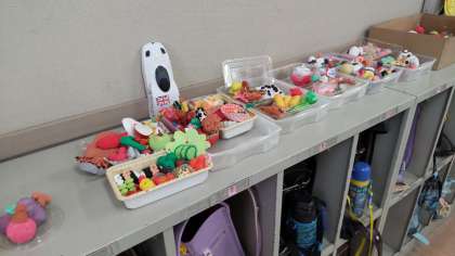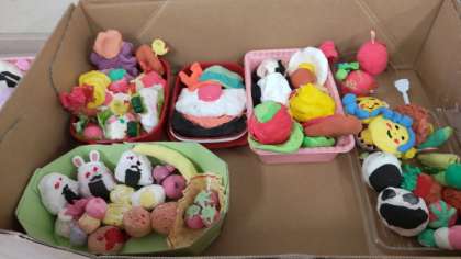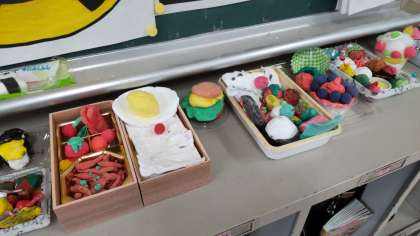 2年生のお弁当箱もほぼ完成。おにぎり、ソーセージ、エビフライ、卵焼き、ミニトマトなど色とりどりになっていました。