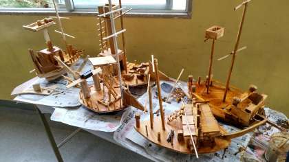 作品展に出品する5年生の船がほぼ完成してきました。もうすこし!