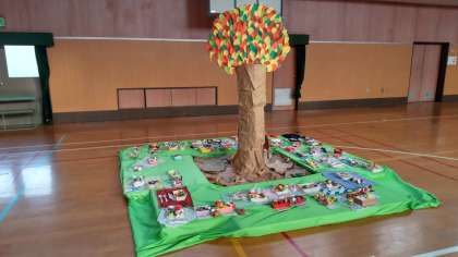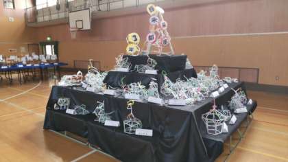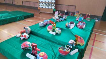 作品展の会場風景です。なかなか、力作が集まりました。ゆっくりご覧ください。9時半〜12時半講堂を開けております。参観は3時間目(10:40〜11:25)に各教室で行います。※1年2組は運動場で体育を行います。雨天時は教室で道徳をします。