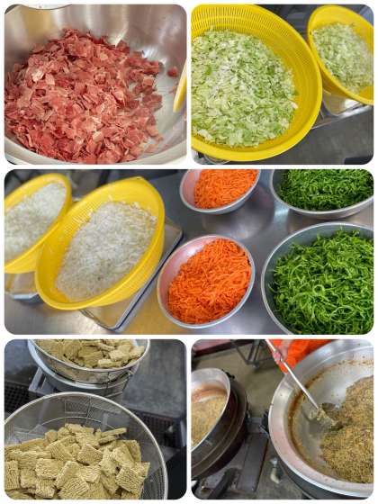 和風焼きそばは、豚肉を主材に、キャベツ、たまねぎ、ピーマン、にんじんを使用し、塩、こしょう、しょうゆで味付けした焼きそばです。喫食時にかつおぶしをかけていただきました。