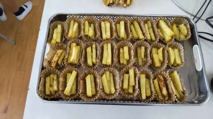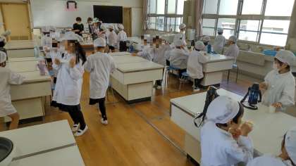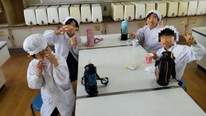 2年生のもう1クラスも「サツマイモパーティー」をしました。包丁でスティック状に切り、ホットプレートで焼き、砂糖で味付けをして食べました。1人分、紙コップ1つ分ぐらい食べました。とても甘くて、おいしかったです。とっても楽しそうでした。