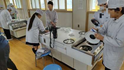 5年生はほうれん草をゆで、ゆで卵を作って調理実習をしていました。ゆで卵はちゃんと時間を図ってゆでていましたし、ほうれん草もゆでたあと少し絞って3等分にしてマヨネーズをかけて食べていました。水が冷たかったけれども、協力して調理実習をしていました。