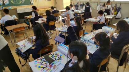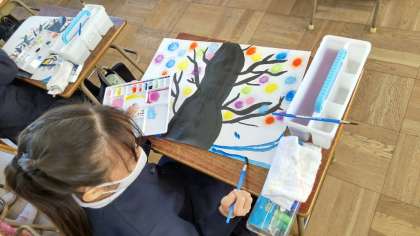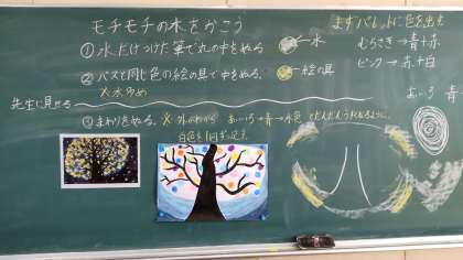 3年生は、国語で学習した物語文「もちもちの木」の想像図を描いていました。なかなか素晴らしく輝いていました。