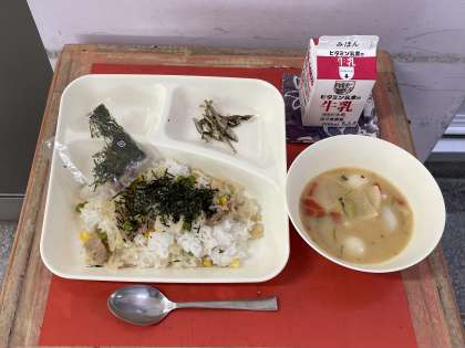 今日の給食には、「ぞう煮」と「ごまめ」が出ました。