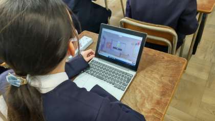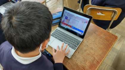 4年生は理科の時間「ものの温まり方」の学習がすべて終わったので、「Kahoot」というソフトを使って、クイズ形式で学習をしていました。ICT機器を使うと授業への参加度がぐんと高まります。また、子どもたちはとても意欲的に取り組むようになります。