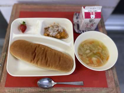 今日の給食には、長崎県産のゆめのかが登場しました。