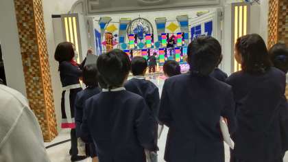 5年2組は、大阪ビジネスパーク駅の近くにある「読売テレビ」の社会見学に行きました。ここでは、「Ten」「そこまでいって委員会」「ミヤネ屋」などの情報番組などが撮影されていること、現場に行く報道の車(実は10億円)」のこと、スタジオの大道具のこと、天気予報などの番組を取る場所、3つのスタジオと一つの生放送のスタジオのセットのことなどを1時間10分ほど説明してもらいながら見学しました。また、コナンくんの銅像や眠りの小五郎の像も見ました。