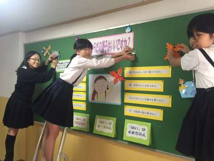 保健委員会で健康的な生活ができるよう掲示物を工夫しています。