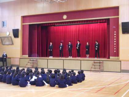 その後、校長からこの1年間で特に大切にしてほしいこととして、「気持ちのいいあいさつ」と「自分や他者の人権を守る」ことの話がありました。