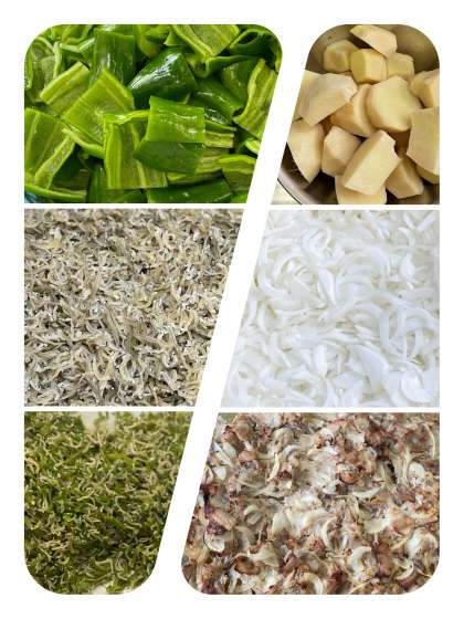 ちりめんじゃこは、いわしの子どもを乾燥させたものです。骨や歯をじょうぶにするカルシウムが多く含まれています。