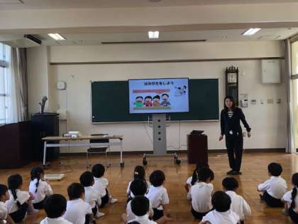 学習内容としては、食事の前や遊びの後などには、手洗い・うがいをすること。併せて正しい手洗いの仕方も学習しました。他にもハンカチ・ティッシュを毎日持ってくること。朝ごはんをしっかり食べることなど、基本的な生活習慣についての学習でした。