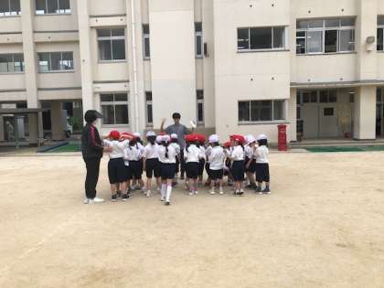 3時間目の体育は、1年生1組と2組が、5月に予定されている校外学習に向けて、いろいろな整列の仕方で、素早く並ぶ練習をしていました。