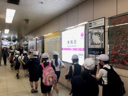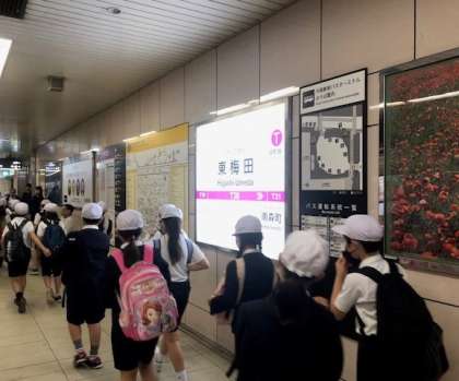 9時に東梅田駅に着きました。電車内の態度や、地下道の歩行の様子は、とてもよかったです。