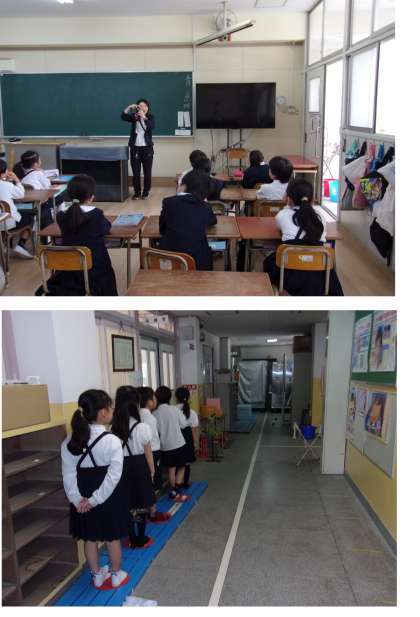 検査を待つ間は、保健室前の廊下で静かに並んで待ち、検査が終わると出口である後ろのドアから「失礼します」ときちんと言って出ていき、教室に戻ります。
