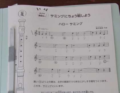 サミングは、左手の親指で押さえていた穴をわずかに開けることによって高い音を出すのですが、開けすぎても、強く吹きすぎても正しい音が出ないので、結構難しい技法です。