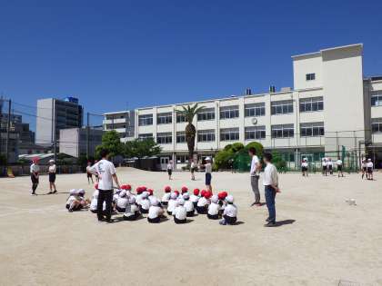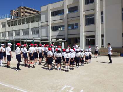 6年生が投げ方を教えて、測定のお手伝いをしていました。