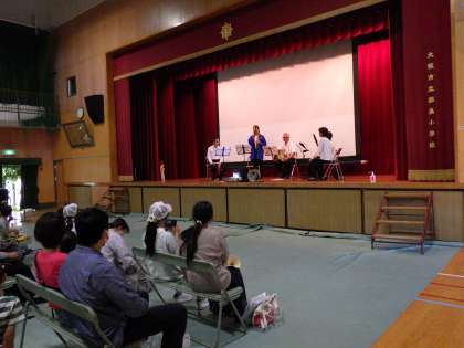 子どもたちがおなじみの「サザエさん」や「ディズニーメドレー」など数多くの曲を披露してくださりました。途中に楽器紹介のコーナーや聴衆参加のペットボトルマラカスを使っての「マツケンサンバ」など趣向を凝らした構成で、とても楽しめました。