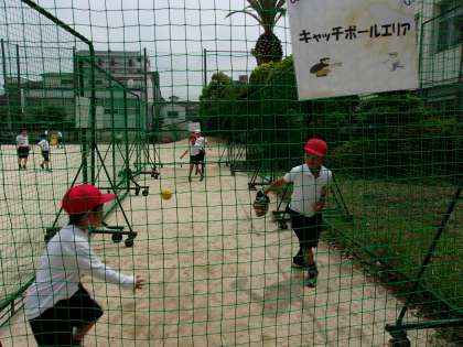 お昼休み、いい天気ということもあって多くの子どもたちが、運動場で遊んでいました。大谷選手からいただいたグローブもキャッチボールエリアで使用でき、人気があります。お昼休みは、ボールを使っての遊びが多いようですが、鬼ごっこをしている人もいます。
