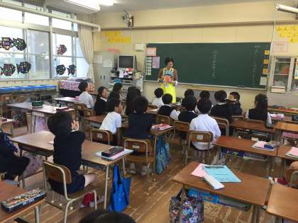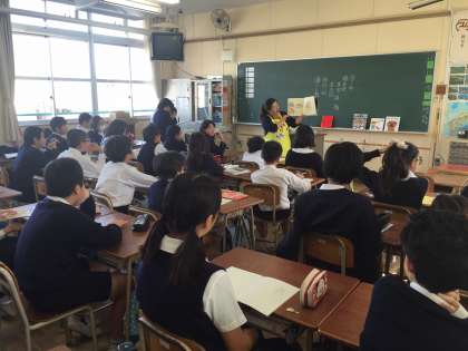 11月11日㈬今日はもこもこさんのお話プレゼントです。2年生と6年生のクラスがプレゼントを頂戴しました。