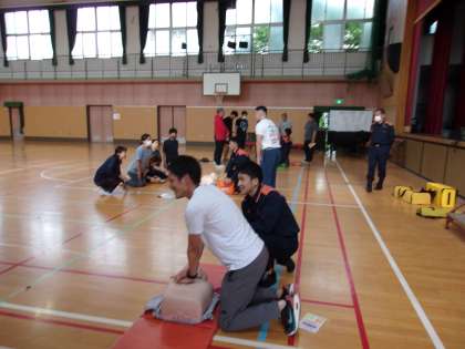 プール水泳が始まるこの時期、学校では水の事故に対する対応方法を学ぶ救急救命講習会を毎年実施しています。