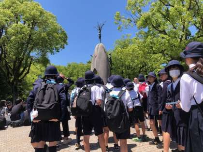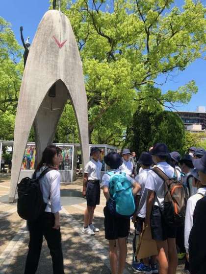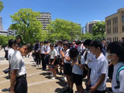 平和記念公園の中にある「原爆の子の像」の前で「平和を祈る集い」をしました。