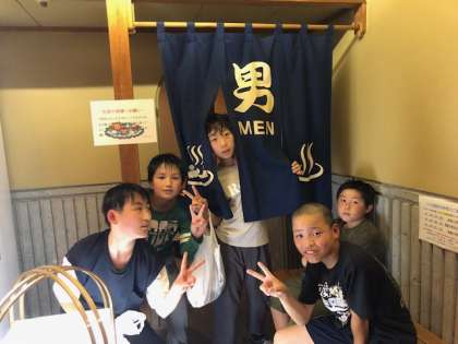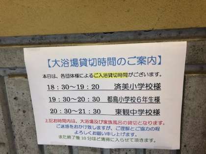 19:30から都島小学校が大浴場を使える時間です。男子は1組と2組が30分交代で入ります。