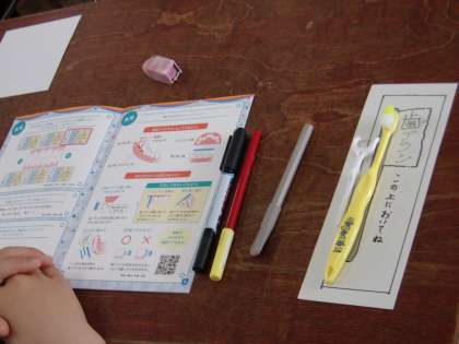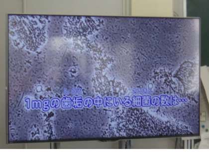 歯ブラシなどを作っている企業などが実施している学習内容で、正しい歯みがきの仕方や、歯垢や歯周病菌などについても学習をしました。