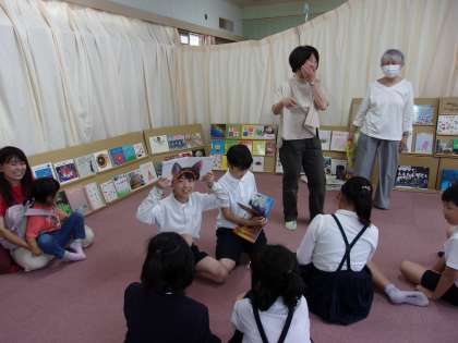 6時間目の委員会の時間には、午前中から各学年にお話をしていただいた絵本研究家の加藤啓子先生より、図書委員会の子どもたち・図書ボランティア「もこもこ」の方たち、それに事前に参加希望された保護者の皆様にご参加いただき、「絵の本講座」ということで、絵本の楽しさを伝えていただきました。