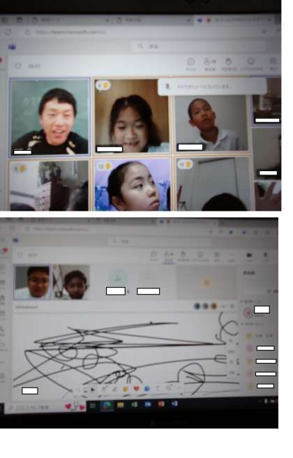 担任は、各教室からTeamsの会議により、各家庭にいる子どもたちと通信しました。まずは、繋がることを確認し、それから、簡単なリアクションやクイズや学習の質問を出し、それに子どもたちが答えることができるかを確認しました。