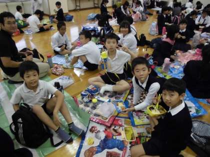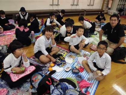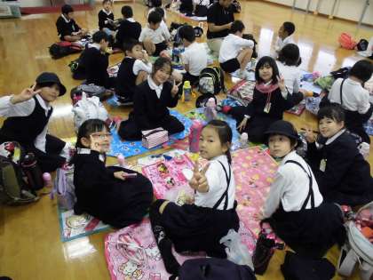 雨の場合は学校に戻ってお弁当という計画でしたが