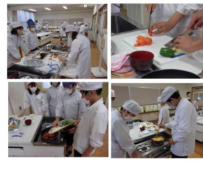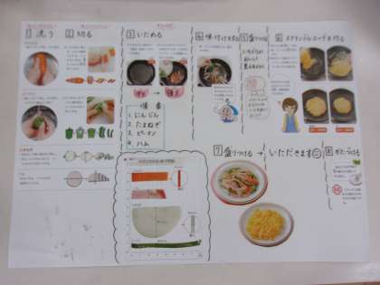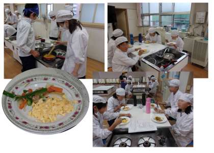 6年生が調理実習で、野菜炒めとスクランブルエッグを作りました。