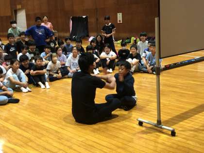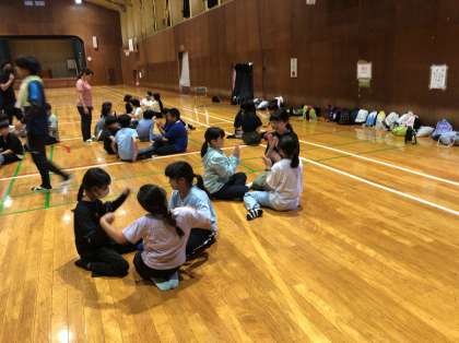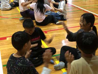 最初は、ワークショップでアイスブレイキング。お手本の見事な「アルプス一万尺」の後、みんなでもやってみました。