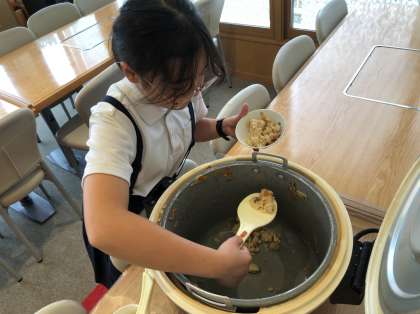 山菜ごはんも、すまし汁も、たくさんの人がおかわりをして、見事に完食です。