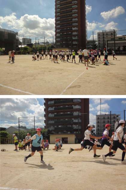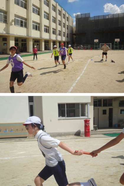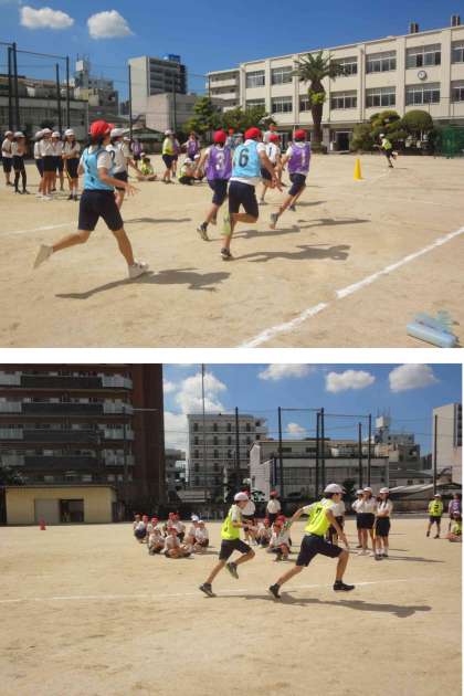 6年生が学年全体でリレーの練習に取り組んでいました。運動会でも、リレーが種目として設定されているので、その練習も兼ねています。