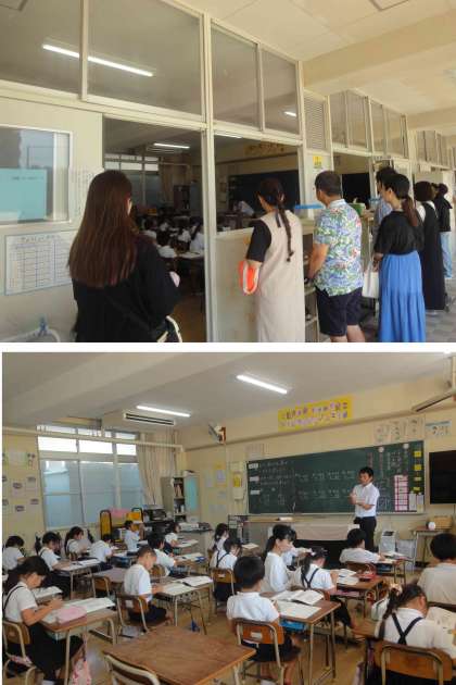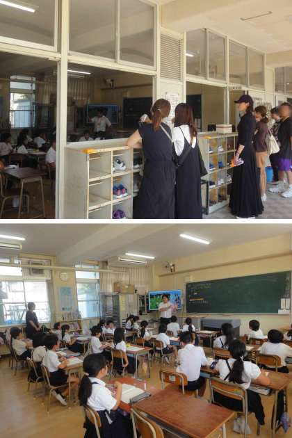 2年生の学習参観。1組は算数「たし算・ひき算のひっ算」、2組は算数「こんにちは さよなら」です。