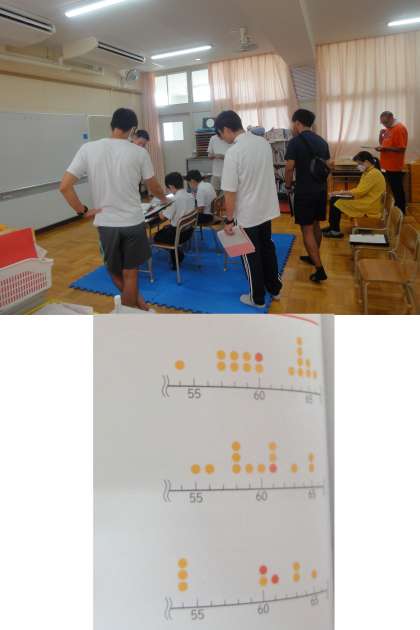 数値のデータを「ドットプロット」に表し、データの分布の様子を調べるもので、タブレットを使って「ドットプロット」を作っていきました。