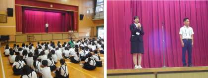 続いて、本校の卒業生で、今日から教育実習生として学ぶ方の紹介をしました。