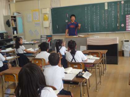 2年生では、国語の学習で学校に関係のある物の名前でしりとりをして、言葉をつなげていく活動をしていました。