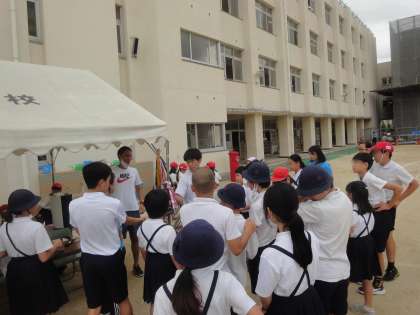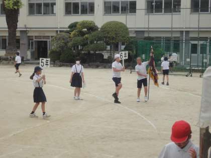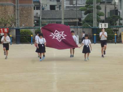 運動会の係にあたっている児童会・応援団などの児童が、昼休みに開会式・閉会式の練習をしました。優勝旗・準優勝盾の受け渡しや、誓いの言葉などを本番と同じように練習しました。