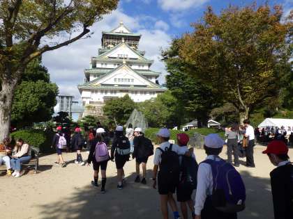6年生が社会見学で、大阪歴史博物館と難波宮跡、大阪城に行きました。