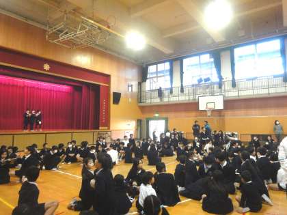 集会の後、今週から1年1組の担任として勤務する古田先生の紹介がありました。