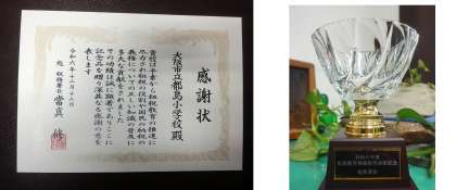 合わせて、本校2年生の児童が「税に関する習字」で優秀賞を受賞したことをご報告いただきました。