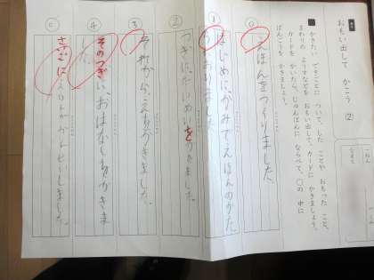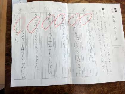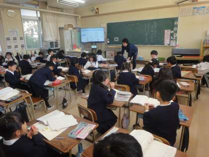 1年1組では、国語の学習をしていました。出来事を思い出して、順序に気をつけて書き出していきます。「はじめに」「つぎに」など、順序を表す言葉をしっかりと学習しました。
