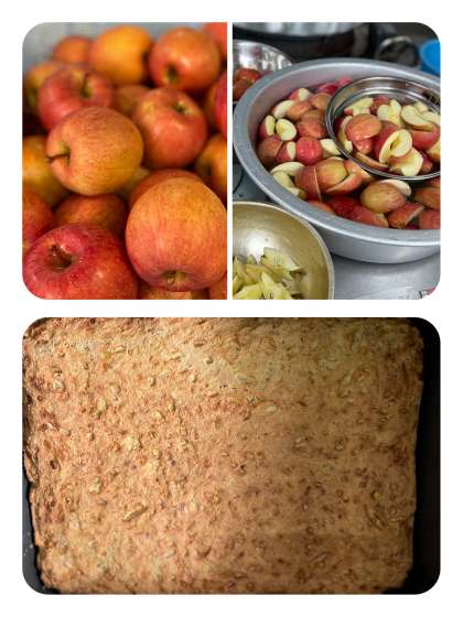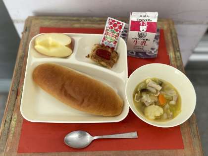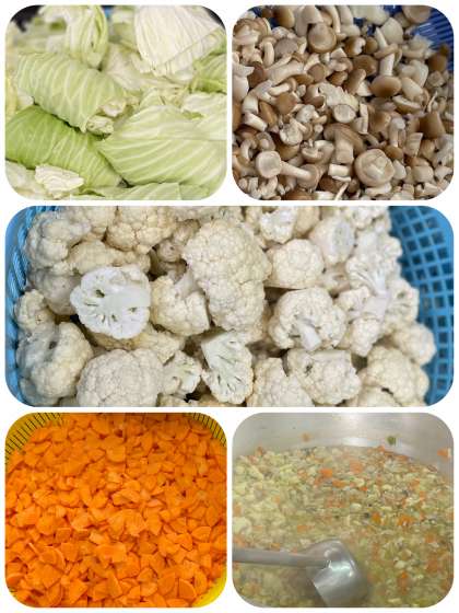 とうふローフは、ツナ、とうふ、細かくカットした大豆、たまねぎ、でん粉を混ぜ合わせ、砂糖、塩、こいくちしょうゆで味付けし、焼き物機で焼いています。