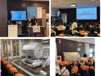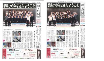 5年生では、社会見学として海老江にある朝日新聞の工場に行きました。工場内には、1時間に18万部も印刷ができる大きな高速オフセット輪転機があり、実際に印刷しているところを見せていただきました。紙は、重さ約1tの巨大なロール状の紙を使っていました。搬送ロボットがロール状の紙を搬送するロボットにも驚きました。