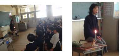 各クラスにお二人ずつ入っていただき、3〜5つのお話を子だもたちに聞かせてくださいました。お話の前に1編の詩を紹介してくださり、ろうそくに火を灯してお話の世界へ連れていってくださいます。